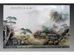 陶瓷瓷板畫:在高溫?zé)频拇砂迳鲜止だL制圖案,再經(jīng)過(guò)二次高溫?zé)贫伞J羌揖哟髲d中堂、臥室墻壁、酒店廳堂、主題公園陶瓷壁畫等裝飾的首選。