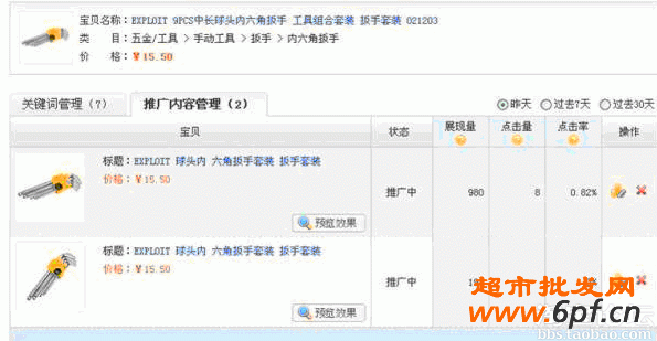 賣家在推廣中,利用最廣泛的就是直通車,而針對直通車推廣的產品,可以做兩個推廣內容管理。比如可以放兩張不同的圖片,然后針對該產品的大流量關鍵詞出適當的高價,讓這個產品在流量大的詞匯搜索中有一個好的展現位置,接著連續觀察兩天左右的時間,就可以判斷出圖片的優劣。如果圖片的點擊都不盡人意,那么可以做新的主圖再做對比分析。