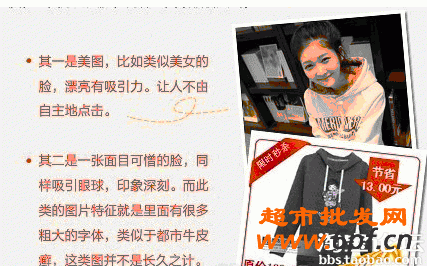 要讓寶貝不花錢也能吸引眼球,首先第一招當然是選圖。從選圖的角度,主圖好比人臉,兩種主圖最吸引人氣: