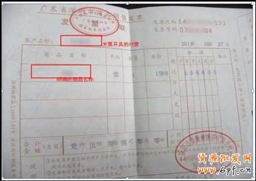 圖1進貨發票(請注意:案例中蓋公章的貿易有限公司不具備出售電子商品的資質,若您為手機類賣家,提供此發票是無效的):