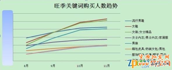 八九月份,掌柜們換季如火如荼,旺季關鍵詞的競爭程度也即將急劇上升,這個時候也是旺季養詞的關鍵時機。各類目旺季關鍵詞競爭趨勢: