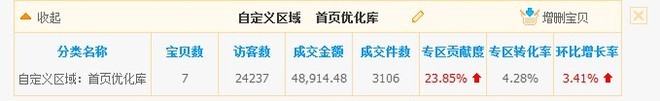 環(huán)比增長率和專區(qū)貢獻(xiàn)度都有很大提升,僅僅7件寶貝就為店鋪帶來的48914.48的銷量業(yè)績。表現(xiàn)非常好。