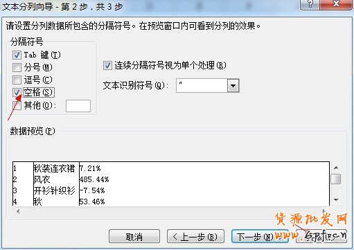 然后,就會看到結(jié)果,但是結(jié)果不是我們想要的格式。我們就在數(shù)據(jù)——分列把數(shù)據(jù)變換一下。
