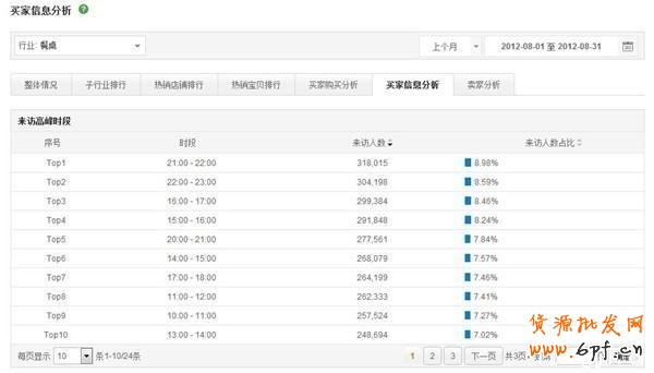 再來看下買家來訪時間:不同類目的來訪和購買時間還是有明顯差異的,針對面膜類目買家的來訪時間,就可以做出對應的限時打折或者定向促銷,甚至可據此安排上下架時間。