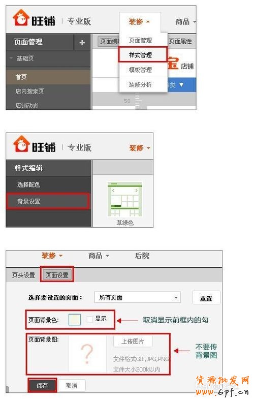 請設(shè)置一下,旺鋪背景,背景色不要打勾,頁面背景圖要刪除