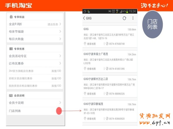 O2O店鋪:門店列表(線上店鋪為“店鋪首頁”按鈕,點擊進入無線店鋪首頁)