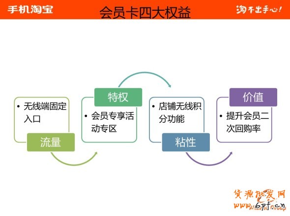 2、會員卡四大功能:無線端固定流量入口,會員專享活動專區,店鋪無線積分功能,提升會員二次回購率