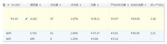 第二,無(wú)線(xiàn)端的點(diǎn)擊率,同時(shí)也要區(qū)分開(kāi)站內(nèi)和站外,以及要排除掉PC端的點(diǎn)擊數(shù)據(jù)的影響。如下圖所示: