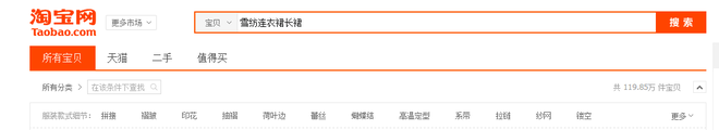 淘寶把這個關鍵詞分成這樣:雪紡,連衣裙,長裙