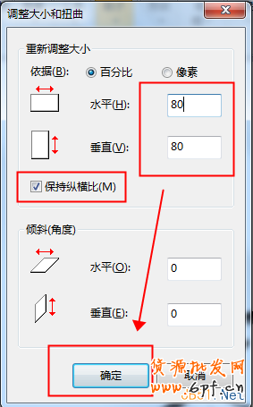第三步:選擇原圖片“拉伸”的水平和垂直的百分比(默認為100%),根據您的需要壓縮的情況填寫壓縮百分比,點擊“確定”即可。下圖以選擇壓縮50%為例: