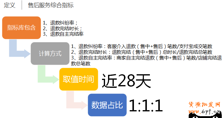 售后服務綜合指標包括:退款糾紛率、退款完結時長、退款自主完結率。