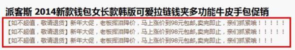 它的作用是輔助主標(biāo)題,用更完善的文字來對(duì)商品的性價(jià)比或當(dāng)前的促銷力度做描述。副標(biāo)題要將商品的賣點(diǎn)放大,材質(zhì)、價(jià)格、發(fā)貨速度等都可以結(jié)合來做;也可加入“15分鐘內(nèi)付款即有豪禮相贈(zèng)”等字樣,來刺激買家積極下單付款。