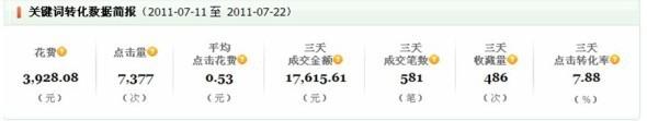直通車是把一個沉默無語的產物,推成明星的性價比最好的方法,我們首要剖析一些次搶手詞匯,然后放在恰當的產物下面,經過設置多個長尾詞匯,漸漸把要推的爆款預熱,再共同店內運動。我們的均勻點擊單價只要0.52元,大大低于同業的評價程度,并且直通車的轉化率高于全店的均勻值
