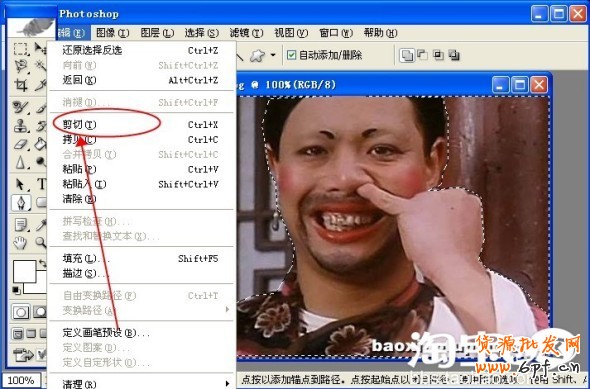 PS第9步:這個(gè)時(shí)候,我們?cè)龠x擇菜單欄編輯菜單中的剪切,這個(gè)時(shí)候,你點(diǎn)了之后,你會(huì)發(fā)現(xiàn)一個(gè)歷史性的畫面即將出現(xiàn),記著從那一刻開始,你就會(huì)PS了。如果你感興趣,可以學(xué)習(xí)下自己制作動(dòng)態(tài)店標(biāo)。
