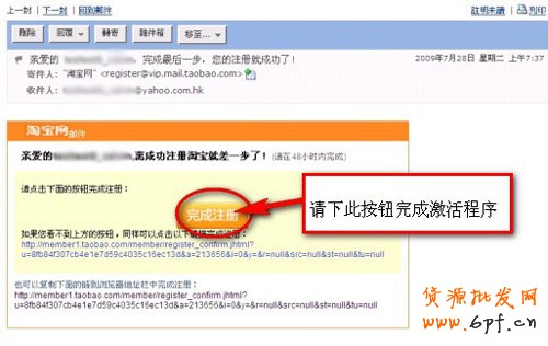 恭喜您, 已經完成注冊淘寶網賬戶。請立即啟動您的支付寶賬戶