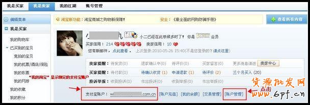 點(diǎn)擊“我的淘寶”頁面提醒區(qū)下方的“賬戶管理”,可直接進(jìn)入“賬號管理”中“支付寶賬戶管理”頁面: