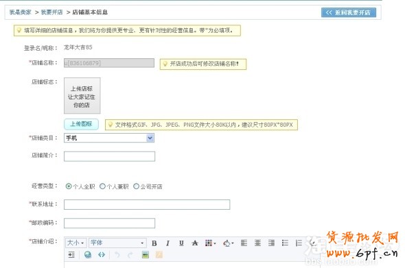 3.考試通過(guò)后完善店鋪基本信息,如圖所示: