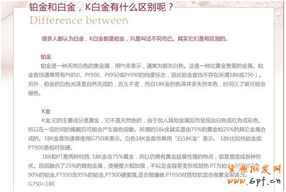 如圖:是一家鉑金高檔飾品商家給出的專業(yè)知識(shí),便于買家便于不同的產(chǎn)品特點(diǎn)。
