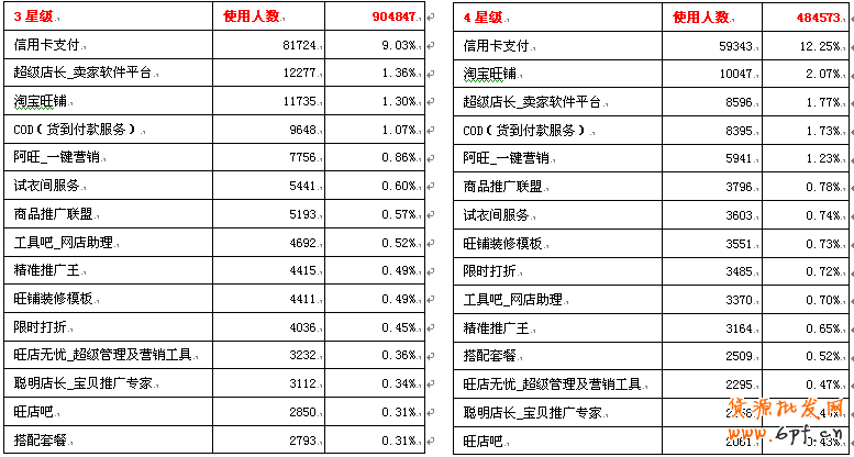 同時因為信譽等級越高,賣家基數越少,想對應的工具也較少,所以在工具采用比率上會比較高。