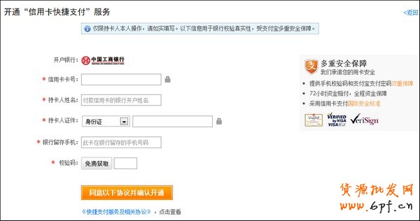 工行信用卡快捷支付開通方式二:在【快捷支付】頻道開通