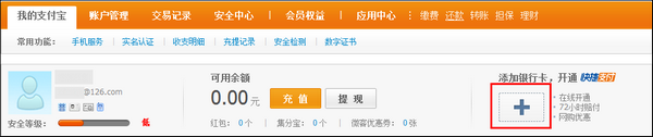 2)之前未申請過快捷支付(卡通)的用戶,點擊“+”;