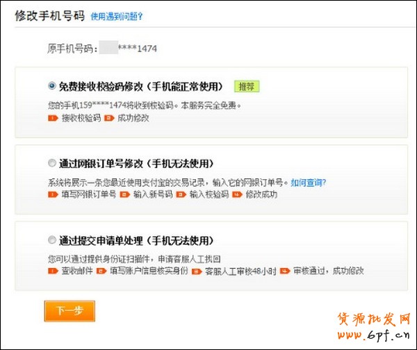 支付寶系統會根據各賬戶的情況判斷每個賬戶適合的修改手機號碼的方法,請您根據頁面提示的方式進行操作。