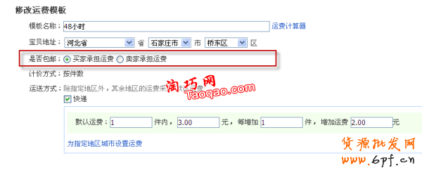 運(yùn)費(fèi)模板增加“是否包郵” 功能,商家可以在運(yùn)費(fèi)模板上設(shè)置“賣(mài)家承擔(dān)運(yùn)費(fèi)”(即:包郵)功能。