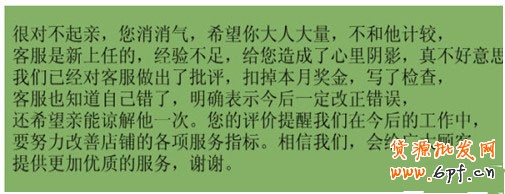 很容易看出,如果您是客戶,看到哪個回復心里會更加舒服,會愿意把評價修改呢?當然是第二種。因為他的說法是完全站在顧客的角度,以顧客的心情去解釋的,所以更容易讓顧客接受。同時,也會增加對您店鋪的好感。