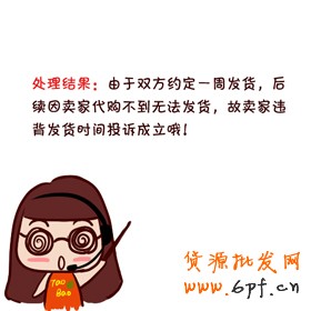 (如果店鋪放假,在節假日內必須每個寶貝都注明發貨時間,非節假日,建議下架),若只在店鋪公告,主圖,簽名等注明,違背發貨時間承諾成立。賣家未按照淘寶規定的72小時發貨或者是未按照與買家約定的發貨時間發貨而被投訴的,商家可以在小二未處理前做好賠付(交易金額的5%,不超過30元)或者和買家協商撤銷,避免違規扣分。