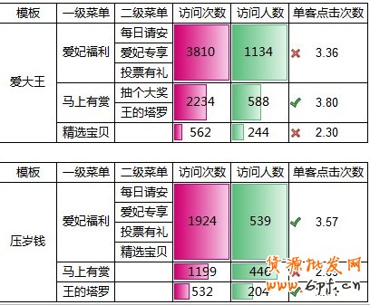 三個一級子菜單平均點擊最高的是愛妃福利、其次是馬上有賞、精選寶貝則點擊最低,可以推測,粉絲對專享粉絲福利和有獎勵的互動活動興趣較高。另一方面,有新奇感菜單的名字,也比較容易吸引粉絲點擊。精選寶貝的菜單需要進行優化。