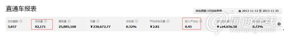 11.12-11.25期間點(diǎn)擊量為82171,平均點(diǎn)擊花費(fèi)為2.81,根據(jù)中老年女裝市場(chǎng)情況,這樣的平均點(diǎn)擊單價(jià)偏高,那么我們從直通車(chē)的流量來(lái)源逐個(gè)開(kāi)始分析。
