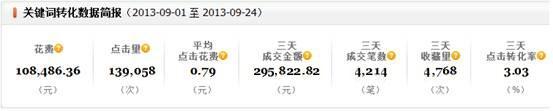 2、轉化率。轉化率應該是該店直通車操作中最嚴重的問題,但是該店主一直將原因歸咎于產品本身,而忽視了直通車的精準性,所以本篇也花大篇幅在提升轉化率上。