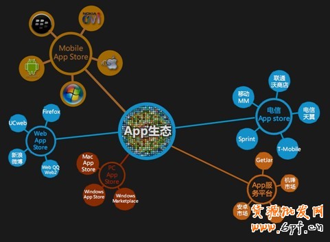 主要是通過(guò)開(kāi)發(fā)者平臺(tái)上傳應(yīng)用,然而平臺(tái)主要包含有硬件開(kāi)發(fā)商(APPStore,Ovi),軟件開(kāi)發(fā)商(Android Market,Windows Mobile Marketplace),網(wǎng)絡(luò)運(yùn)營(yíng)商(移動(dòng) MM,天翼空間,沃商店),獨(dú)立商店(安卓市場(chǎng),OpenFeint),以及一些 B2C 應(yīng)用平臺(tái)(Amazon AndroidAPP Store)等等,在國(guó)內(nèi)市場(chǎng)中,主要由硬件開(kāi)發(fā)商商店、網(wǎng)絡(luò)運(yùn)營(yíng)商、獨(dú)立商店等支撐著,其中,硬件開(kāi)發(fā)商商店:聯(lián)想應(yīng)用商店、智匯于(華為);網(wǎng)絡(luò)運(yùn)營(yíng) 商:移動(dòng) MM、電信天翼空間、聯(lián)通沃商店;獨(dú)立商店:安卓市場(chǎng)、安智市場(chǎng)、機(jī)鋒市場(chǎng)、愛(ài)米軟件商店、優(yōu)億市場(chǎng)、掌上應(yīng)用匯、安卓市場(chǎng)、安智市場(chǎng)、開(kāi)齊商店、N 多市場(chǎng)、安卓星空、安豐下載、力趣安卓市場(chǎng)等。