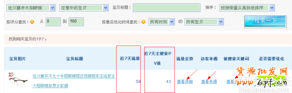 我們通過軟件可以看到最近7天,寶貝的流量情況,包括免費的搜索流量是多少、付費流量是多少、關鍵詞是什么有了關鍵詞,我們就可以把最近7天沒有流量的關鍵詞替換掉,每7天一優化,從而引爆搜索流量。