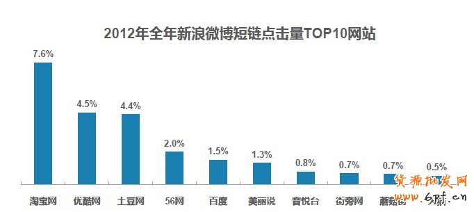 2012年微博發(fā)展迅猛,體現(xiàn)微博多元化傳播效果的同時,也展現(xiàn)出微博與網(wǎng)站之間流量轉換的特征和規(guī)律。其中,電商和視頻網(wǎng)站備受微博用戶關注。