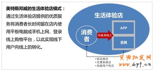 生活體驗店模式是指品牌商在優質商圈建立生活體驗店,為到店消費者提供WIFI、平板電腦、咖啡等更便利的生活服務和消費體驗,從而吸引消費者長時間留在店內使用平板電腦或手機上網,登錄和下載品牌自有APP,以此實現線下用戶向手機APP的轉化。生活體驗店模式在服裝零售O2O領域是一個大膽、新穎的嘗試,在這種模式下,門店將不再局限于靜態的線下體驗,不再是簡單的購物場所,而是購物的同時可以愜意的上網和休息。該模式在服裝零售行業的典型實踐者是美特斯邦威。