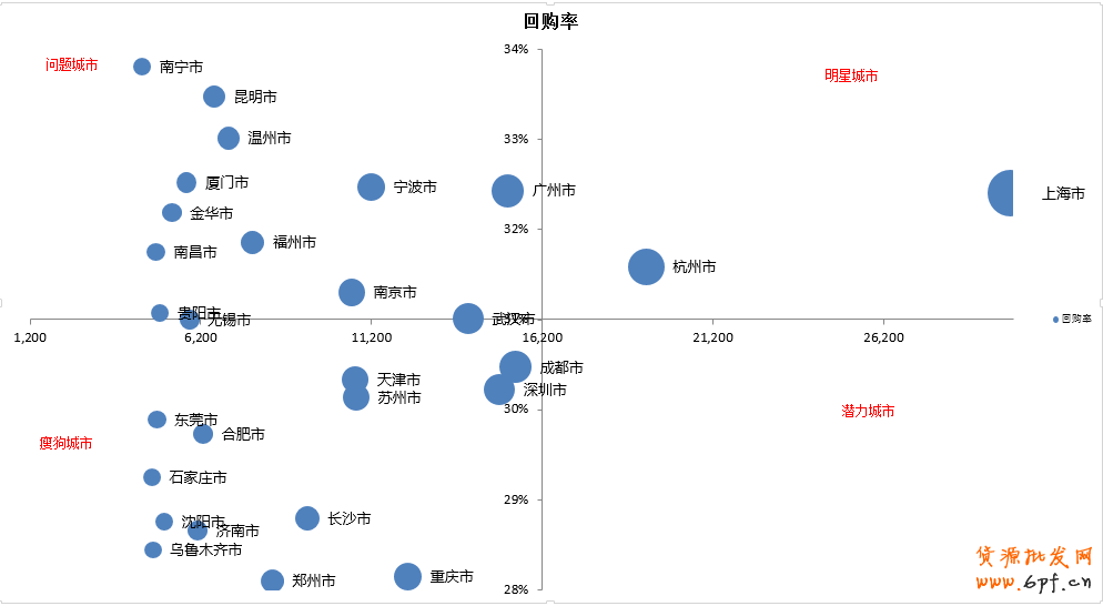 通過不同城市的客戶復(fù)購情況,我們可以更有針對性的加大對重點復(fù)購城市的資源投入,根據(jù)不同城市的文化喜好,制定更個性化的鉆展圖,優(yōu)化潛力城市的投放計劃,讓自己在廣告投入那塊做出更好看的ROI。