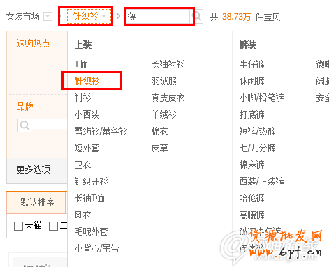 我們看到下面有分部就是要上裝里面的針織衫,而且還鎖定了一關鍵詞是“薄”這些都是必備的,為的就是相關性,我們再來看個類目:
