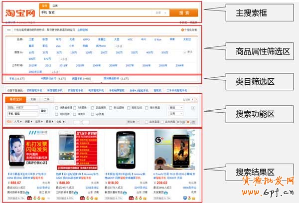 淘寶主搜結(jié)果頁(yè)主要包括以下模塊:
