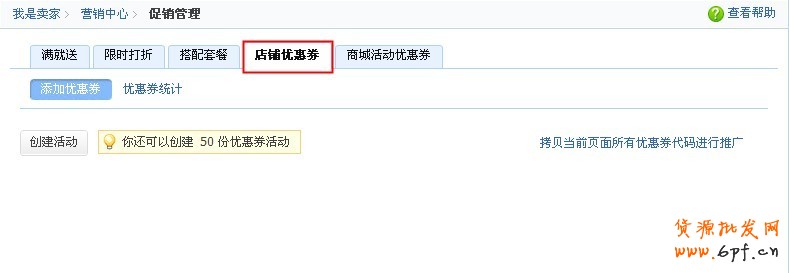 2.1營銷中心--促銷管理—店鋪優惠券
