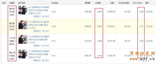 多款推廣的方式可以有效降低我們的直通車PPC。這個(gè)策略跟我們平時(shí)聽到的廣撒網(wǎng)策略有類似之處,表面上看是多款推廣多加詞,很多賣家對(duì)這個(gè)方式會(huì)有疑問:我們一個(gè)款主推都不能保證店鋪的盈利,多款推廣,那不是會(huì)虧得更多?這里要著重說明一下,我們并不是為了多推廣款式而推,目的是為了通過多推廣的方式,對(duì)款式進(jìn)行充分的測(cè)試,從而從中選出能給店鋪帶來利潤(rùn)的爆款。核心是為了選款。