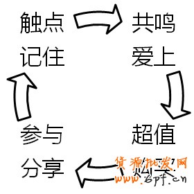 營銷More有力=觸點記住+共鳴愛上+超值購買+參與分享。