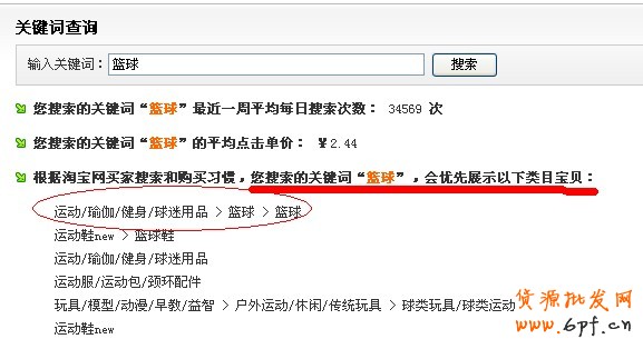 這里會顯示,主關鍵詞為“籃球”的寶貝,會優先展示的類目.
