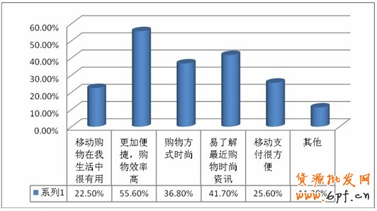 另外,還分別有25.6%和22.5%認為“移動支付很方便”和“移動購物在我生活中很有用”也是其選擇移動購物的原因。