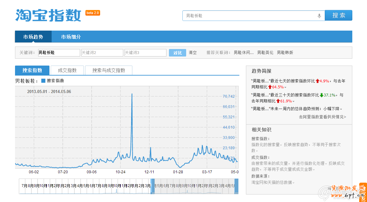 每一個寶寶都有個類目,寶貝對應的關鍵詞叫做類目關鍵詞。這樣的詞一般是有很好的展現,很很低的競爭。舉例說明,看下某個寶貝的類目,所屬類目是男鞋,流行男鞋板鞋。展現客觀。