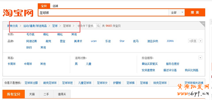如:足球襪,系統(tǒng)推薦匹配到的類目我們首先看到的就有三個。這時候我們應(yīng)該選擇最適合寶貝的,當(dāng)然是“足球襪”這個類目。這樣買家根據(jù)屬性篩選,點擊我們寶貝進(jìn)入頁面后,帶來的流量相對來說就精準(zhǔn)多了。如果自己不確定,可以在首頁主搜欄輸入寶貝關(guān)鍵詞,參考搜索出來的類目哦。