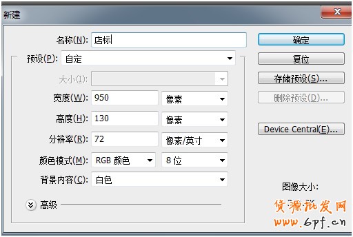 首先我們打開(kāi)ps,然后新建一個(gè)文件。注意:旺鋪版店標(biāo)的格式是尺寸寬度是950px,店鋪招牌的高度是120px,設(shè)好相關(guān)數(shù)據(jù)后,就點(diǎn)擊確定,建立模塊。