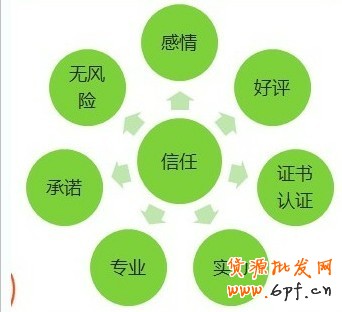 我們知道當一位消費者看到你的商品頁面后,可能當場就會對商品產生濃厚的興趣。但是對于商品的疑慮經很大程度上大小其購買的欲望。對此我們的商品頁面設計需要更好的建立站點的權威,讓我們的商品看起來更加的有保障,大小消費者在購買產品時的疑慮。那么我們可以從哪幾方面下手呢。如下圖所示,我們可以從以下幾個方向入手。