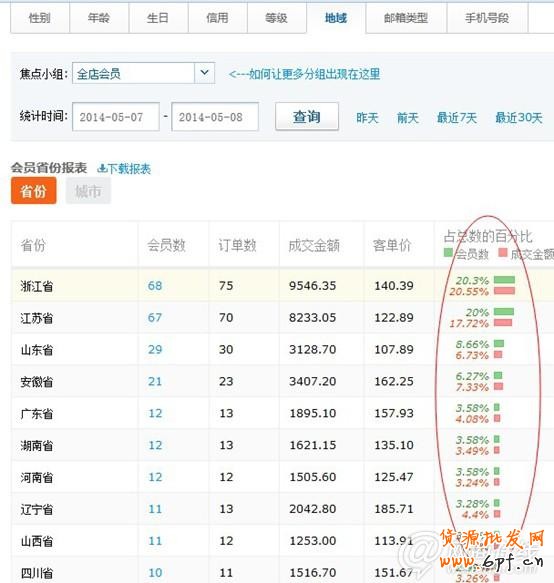 上圖就是某時間段內店鋪成交會員的分布情況,我們根據地域結合營銷主題來推送。