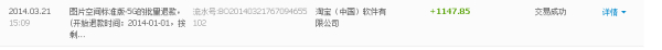 關于退款的金額和信息,親們可以查看自己店鋪綁定的支付寶賬戶,選擇3月21日-至今的收款紀錄,退款金額公式為:退款金額=訂購金額x14年1月1日至到期日剩余天數/訂購周期天數,支付寶中退款詳情舉例如圖所示: